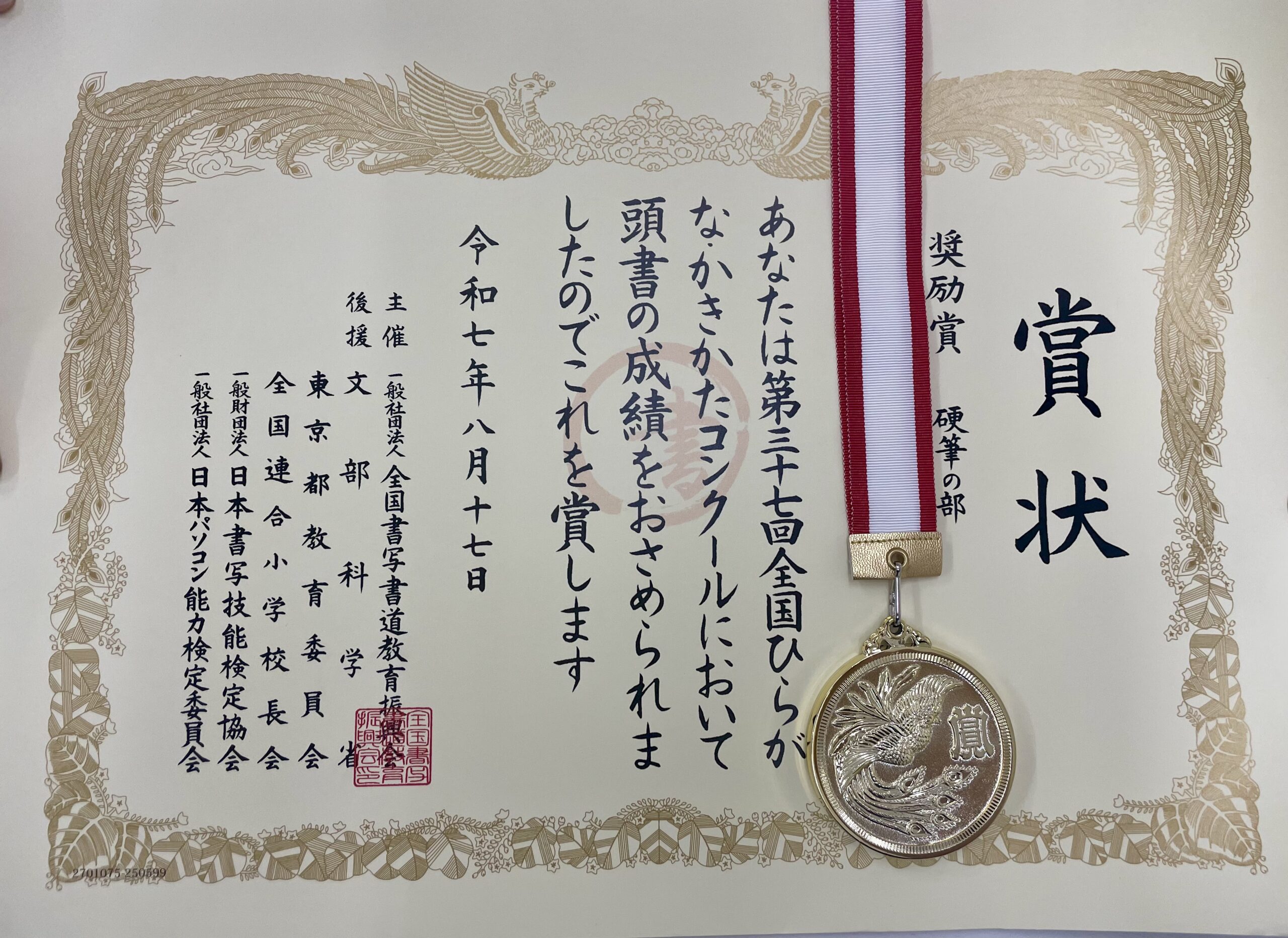 立派な賞状とメダルを見せてもらい、心から彼の努力を称賛しました。とても嬉しかったです。