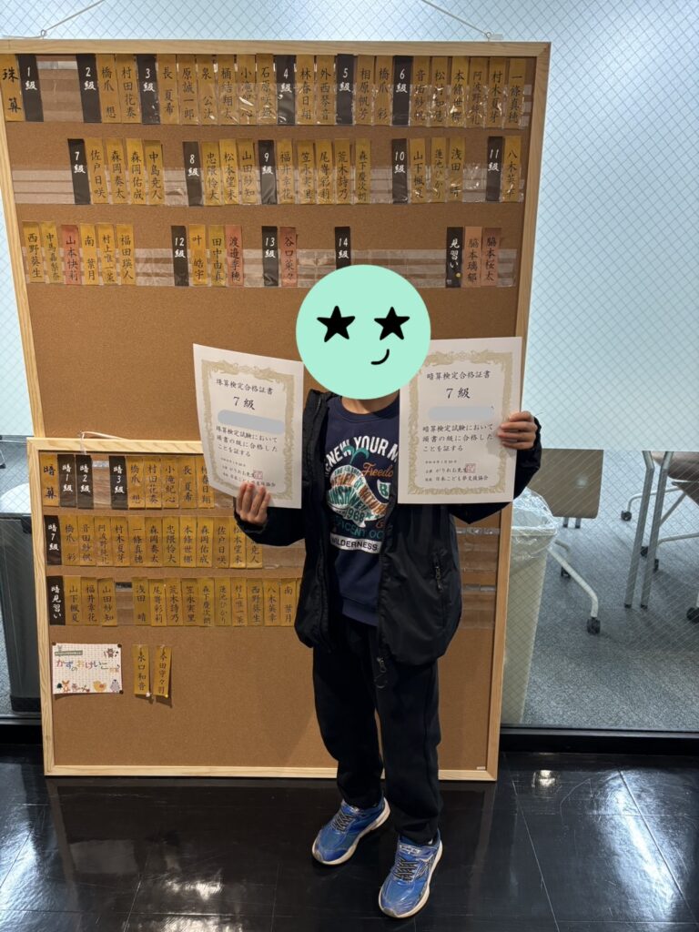 7級合格おめでとう。これからも目標に向かって頑張っていこうね。